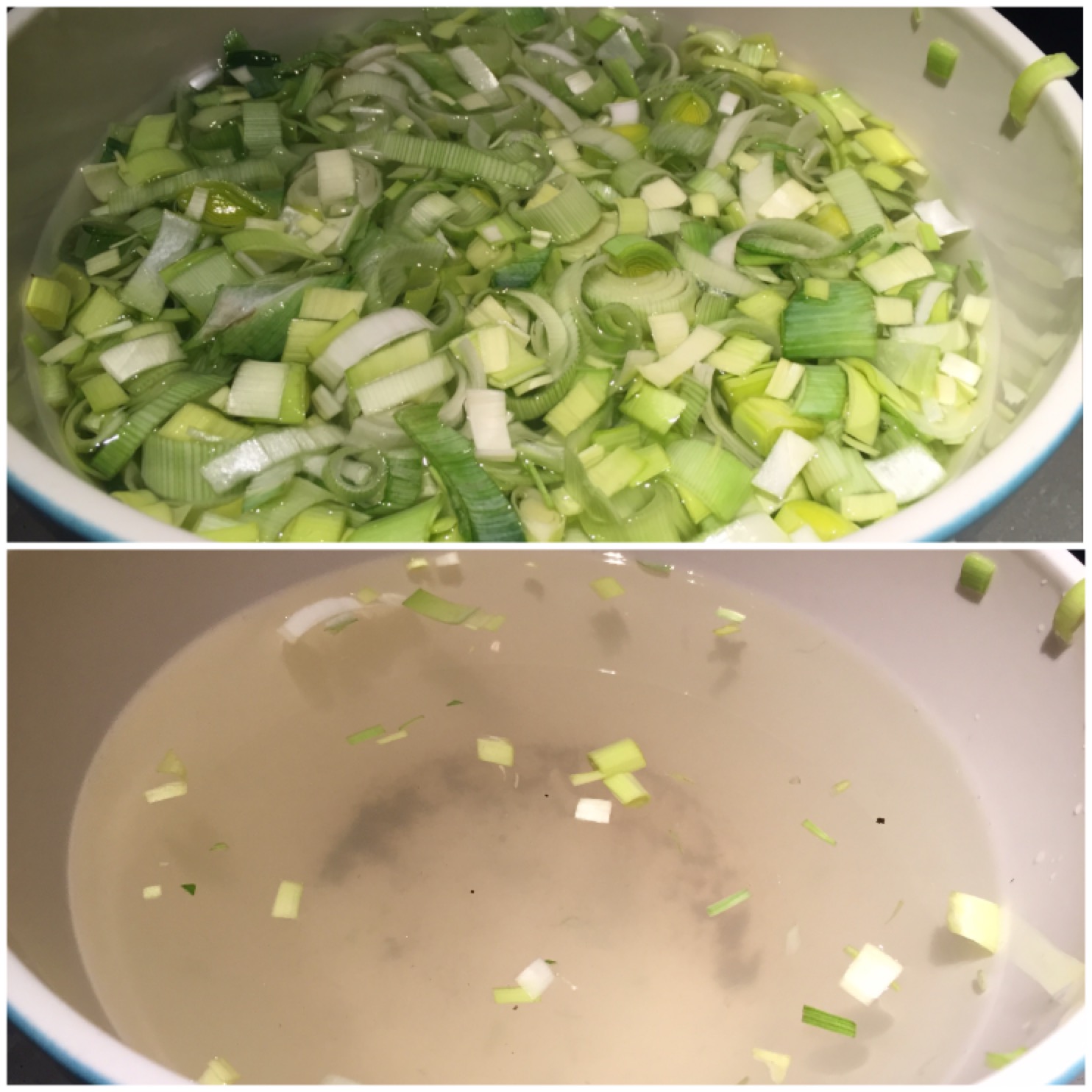 - 3 leeks, dark green ends removed, sliced into quarters then sliced thinly